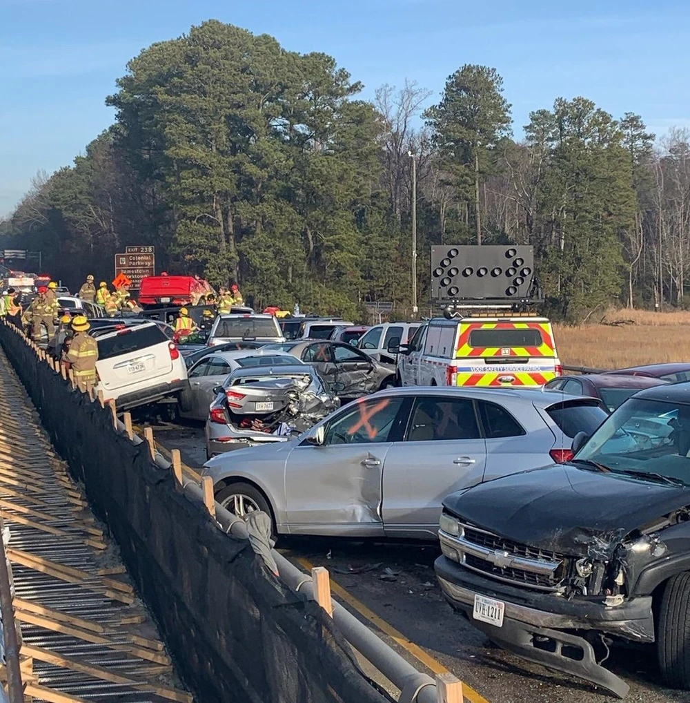 “Ước tính có tới 69 chiếc xe hơi đã va chạm liên hoàn vào nhau và hơn 51 người bị thương đã được đưa sơ cứu hoặc đưa đến bệnh viện” - thanh tra Michelle Anaya thuộc cảnh sát bang Virginia thông tin chiều 22-12.