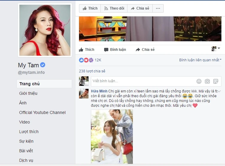 Dù không hề nhắc tới tên ca sĩ Mỹ Tâm trong status nhưng dòng trạng thái ẩn ý của anh cũng đủ khiến nhiều người đồn đoán: sự kiện chấn động ấy chính là việc nữ ca sĩ Mỹ Tâm sẽ lên xe hoa về nhà chồng. “Chị Tâm cưới ạ?” “Có thật chị Tâm sẽ tổ chức đám cưới không chú”,… liên tục được người hâm mộ đặt câu hỏi.