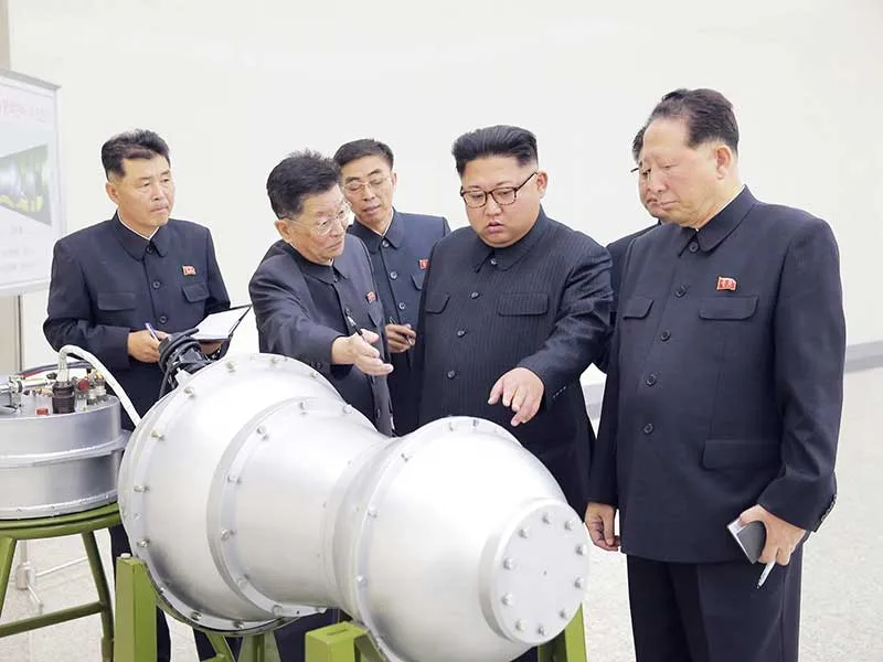 Nhà lãnh đạo Triều Tiên Kim Jong-un đã cho tăng tốc chương trình phát triển vũ khí hạt nhân và ICBM trong năm 2017. Ảnh: KCNA