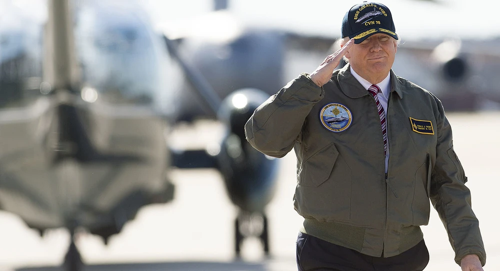 Tổng thống Trump làm động tác chào tay khi bước tới Không lực một trước khi khởi hành từ căn cứ Langley ở Virginia hôm 2-3. Ảnh: Getty