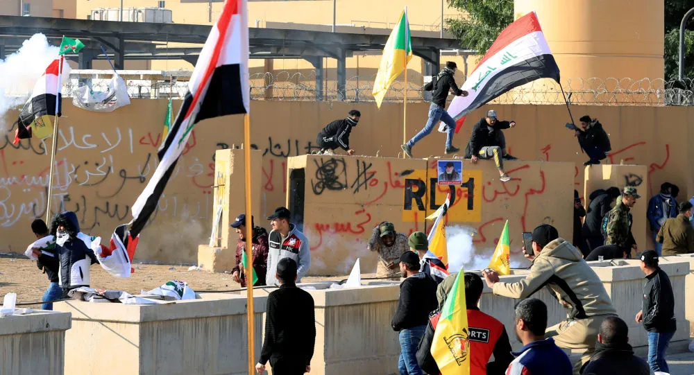 Họ đốt phá hàng rào, buộc lính cận vệ Mỹ phải ẩn núp. Ngoại trưởng Mỹ cho hay không ai bị thương và không có kế hoạch sơ tán nhân viên. Lầu Năm Góc đã điều động lính thủy đánh bộ tới bảo vệ các nhà ngoại giao. Mỹ tuyên bố sẽ điều thêm quân tới Baghdad.
