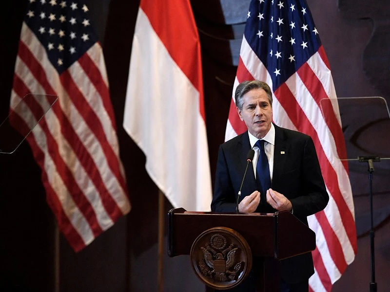 Ngoại trưởng Mỹ Antony Blinken phát biểu hôm 14-12, khi thăm Indonesia. Ảnh: THE NEW YORK TIMES