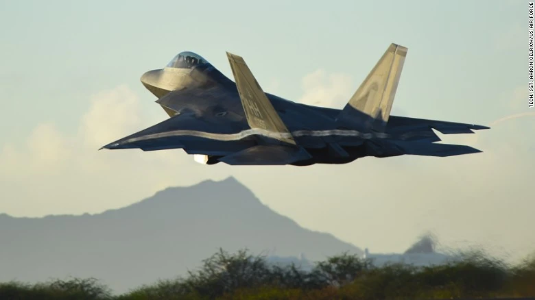 Máy bay F-22 Raptor của Không quân Mỹ tham gia nhiệm vụ không kích các mục tiêu IS ở Syria lần đầu năm 2014 (Ảnh: CNN)