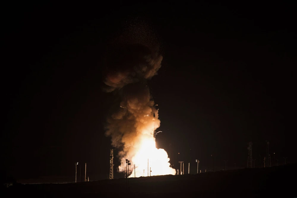 Thời điểm tên lửa ICBM Minuteman III rời bệ phóng tại căn cứ không quân Vandenberg, California ngày 5-2. Ảnh: AFGSC