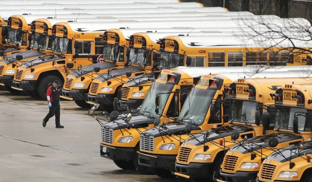Bãi đỗ xe đưa đón học sinh ở TP Manchester, bang New Hampshire (Mỹ). Ảnh: AP