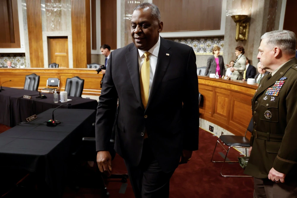 Bộ trưởng Quốc phòng Mỹ Lloyd Austin (trái) và Chủ tịch Hội đồng tham mưu trưởng liên quân Mỹ Mark Milley đến điều trần trước Ủy ban Quân vụ Thượng viện về yêu cầu ngân sách Bộ Quốc phòng, ngày 10-6. Ảnh: REUTERS