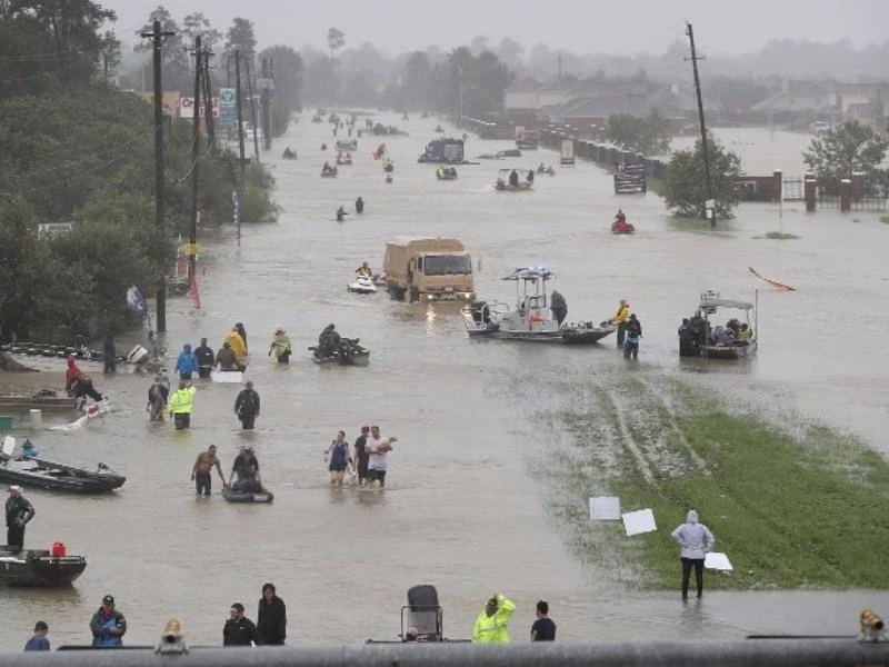 Bão Harvey trút mưa lớn gây lũ lụt nghiêm trọng tại Texas. Ảnh: GETTY