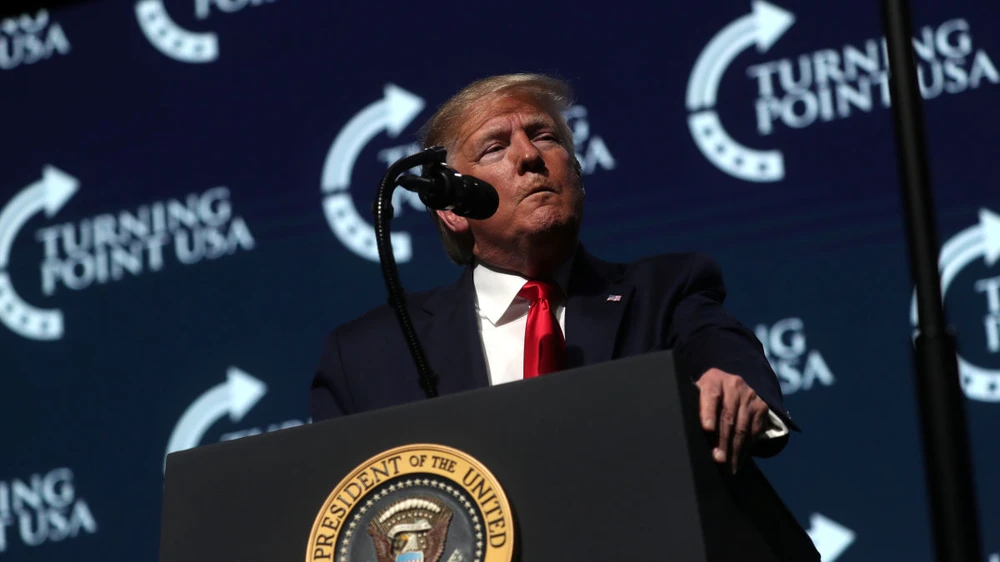 Ông Trump trong khi phát biểu trong một cuộc họp tại Turn Point USA. Ảnh: Sputnik