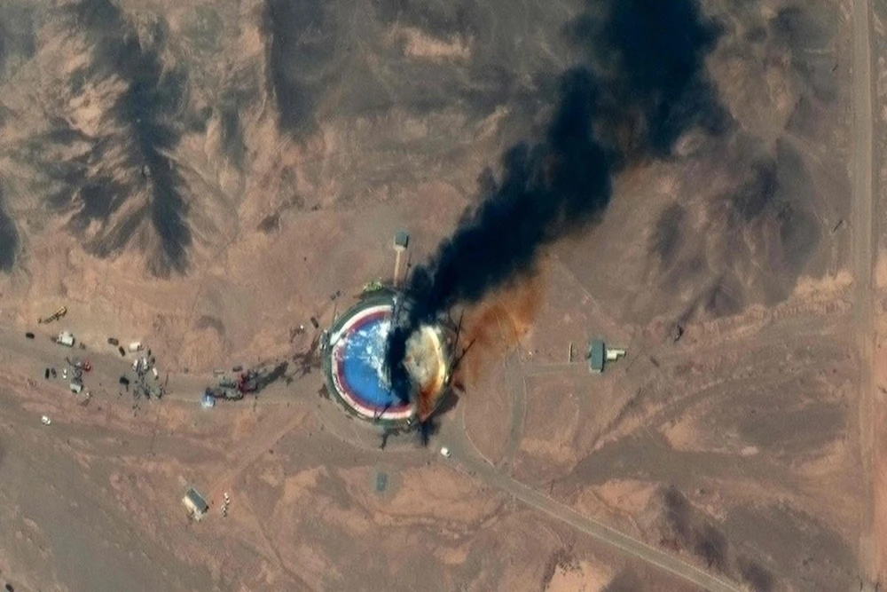 Hình ảnh vệ tinh ngày 29-8 chụp một vụ phóng tên lửa thất bại của Iran tại Trung tâm Không gian Imam Khomeini ở tỉnh Semnan (Iran). Ảnh: AFP