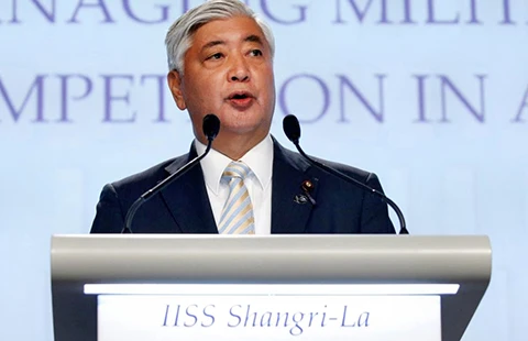 Bộ trưởng Quốc phòng Nhật Gen Nakatani phát biểu tại Đối thoại Shangri-La sáng 4-6. Ảnh: REUTERS