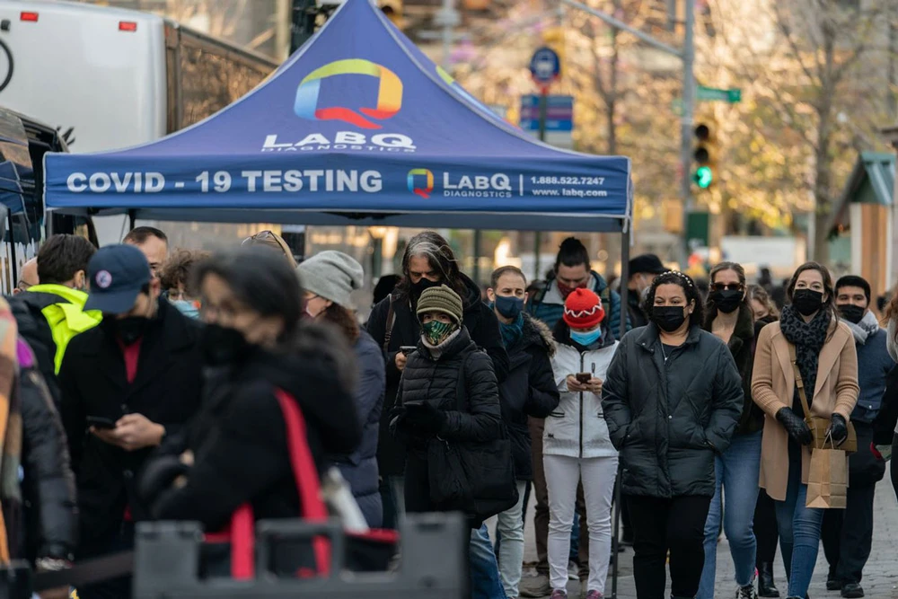 Người dân xếp hàng trước một điểm xét nghiệm COVID-19 lưu động ở bang New York ngày 5-12. Ảnh: BLOOMBERG