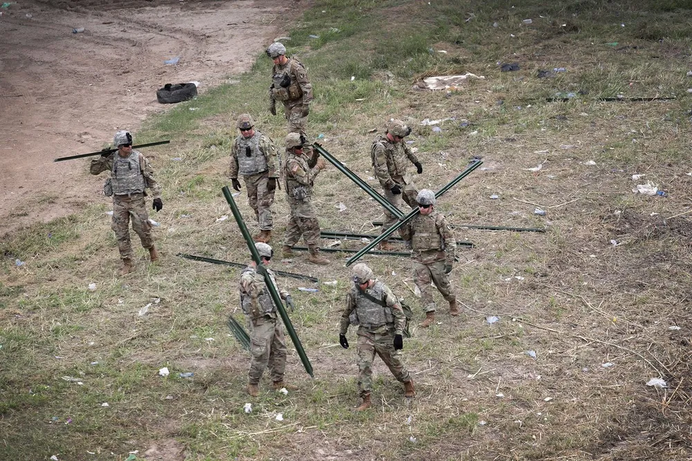 Binh sĩ Mỹ chuẩn bị dựng hàng rào thép gai ở Nam Texas. Ảnh: TWITTER