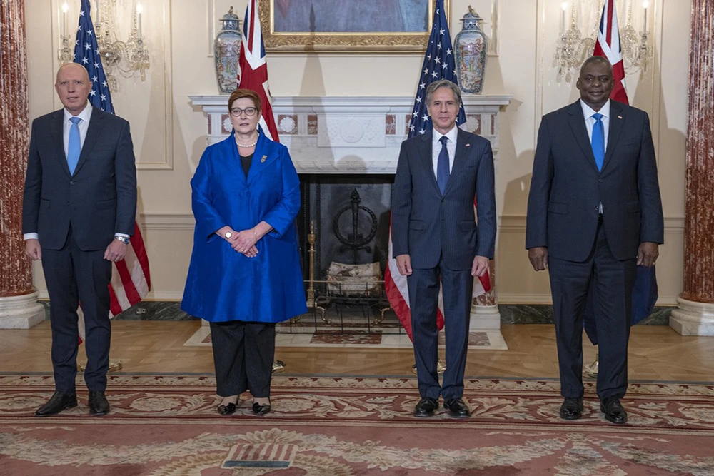 Ngày 16-9, tại thủ đô Washington, D.C. (Mỹ), Ngoại trưởng Antony Blinken và Bộ trưởng Quốc phòng Lloyd Austin tiếp Ngoại trưởng Úc Marise Payne và Bộ trưởng Quốc phòng Úc Peter Dutton trong khuôn khổ hội nghị tham vấn cấp bộ trưởng ngoại giao và quốc phòng Mỹ - Úc lần thứ 31.