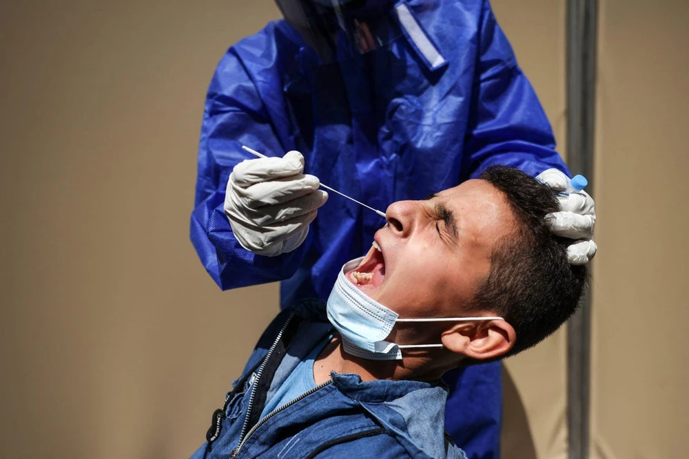 Một người dân đang được lấy mẫu xét nghiệm COVID-19. Ảnh: FORBES