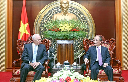 Chủ tịch Quốc hội Nguyễn Sinh Hùng tiếp đoàn hạ nghị sĩ Mỹ do ngài John Kline, Chủ tịch ủy ban Giáo dục và Lao động, làm trưởng đoàn. Ảnh: TTXVN