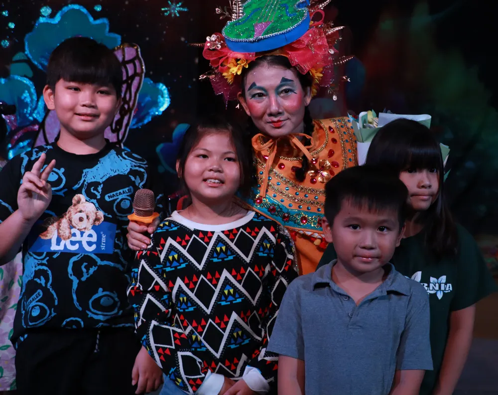 Trang phục rực rỡ phù hợp với mỗi nhân vật để hấp dẫn các em nhỏ, thậm chí sân khấu 5B còn gắn đèn lên trang phục nhân vật phù thuỷ Nấm Độc (Tuyền Mập)… |