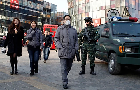 CNN nhận thấy công an Bắc Kinh đã tăng cường lực lượng ở các khu thương mại lớn và trung bình (ảnh). Bộ Công an viện lý do là bảo vệ các địa điểm đông người dịp lễ Giáng sinh chứ không nói đến cảnh báo khủng bố.