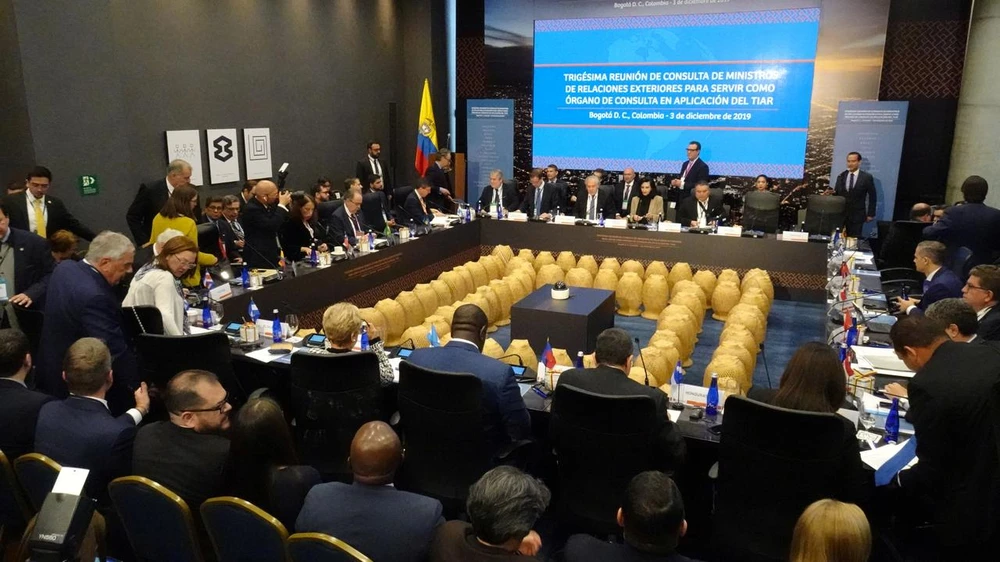 Các bộ trưởng ngoại giao từ các quốc gia thuộc Hiệp ước Hỗ tương Liên Mỹ châu (TIAR), gặp nhau tại Bogota, Colombia ngày 3-12-2019. Ảnh: REUTERS