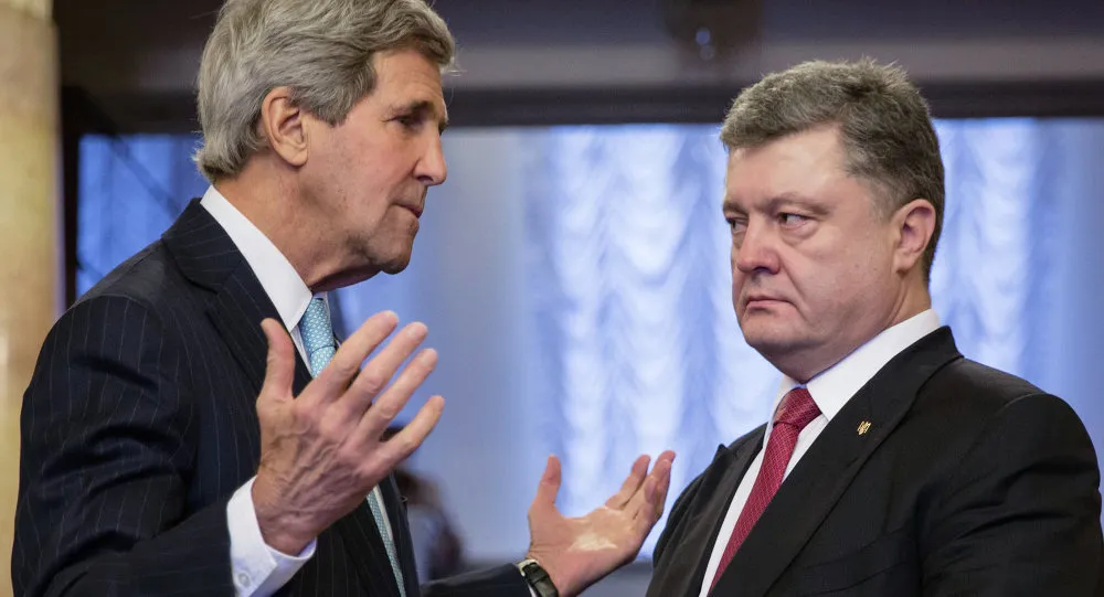 Ngoại trưởng Mỹ John Kerry và Tổng thống Ukraine Petro Poroshenko. (Ảnh: Sputnik)