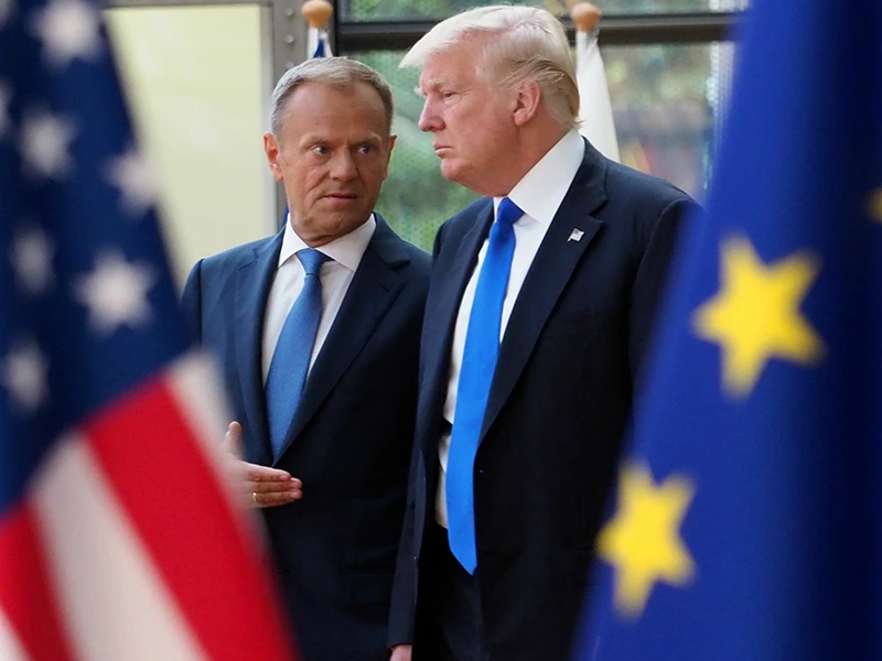 Ông Trump (phải) sẽ kích nổ chiến tranh thương mại với EU hôm nay? Ảnh: CONSILIUM