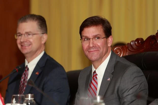 Bộ trưởng Quốc phòng Mỹ Mark Esper (phải). Ảnh: AP