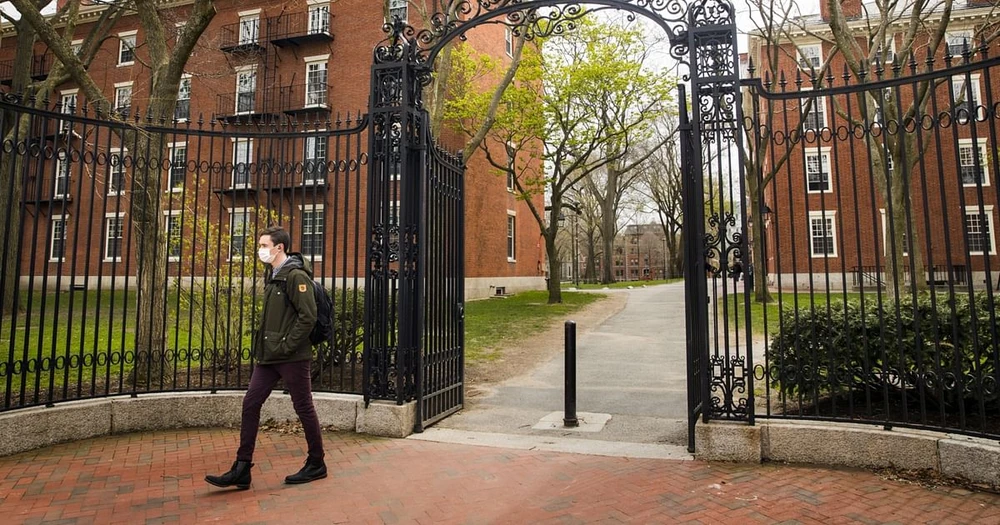 Một sinh viên trước khuôn viên của Đại học Harvard (Mỹ). Ảnh: BLOOMBERG