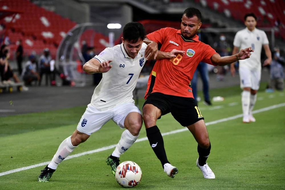 Đông Timor (áo đỏ) đã trải qua hai trận thua Thái Lan 0-2 và Myanmar 0-2. Ảnh: AFF