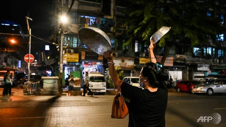Người dân TP Yangon đã tụ tập bên ngoài nhà của họ để khua xoong nồi và bấm còi ô tô nhằm phản đối cuộc chính biến.