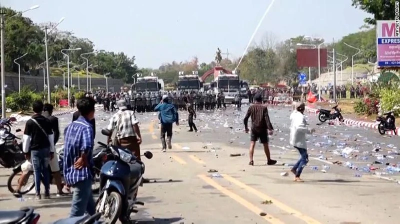 Biểu tình tại Myanmar. Ảnh: CNN
