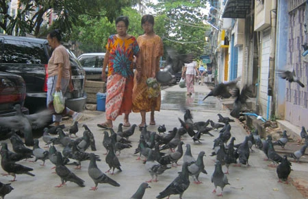 Buổi sáng thanh bình ở góc phố đường Botataung Pagoda tại Yangon, trung tâm kinh tế và văn hóa của Myanmar. Ảnh: NGỌC LONG