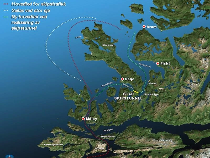 Đường hầm này sẽ cho phép lên đến 120 tàu đi xuyên qua núi thay vì di chuyển băng qua khu vực biển Stadhavet vô cùng nguy hiểm. Khu vực này thường xảy ra khoảng 100 cơn bão mỗi năm. Ít nhất 33 người đã thiệt mạng ở vùng biển này kể từ cuối Thế chiến II tới nay. Ảnh: NCA