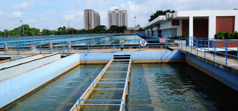 Tổng công suất phát nước của TP.HCM hiện đạt 2.42 triệu m3/ngày nhưng hiện còn 300.000 m3/ngày đang “bí đầu ra” do thiếu vốn đầu tư đường ống. Trong ảnh: Nhà máy nước Thủ Đức. Ảnh: MP