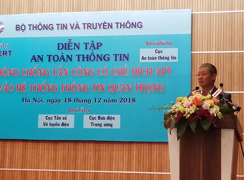 Ngày 18-12, Trung tâm Ứng cứu khẩn cấp máy tính Việt Nam - VNCERT phối hợp với Cục An toàn thông tin tổ chức chương trình Diễn tập Ứng cứu sự cố an toàn thông tin mạng toàn quốc năm 2018 với chủ đề “Phòng, chống tấn công có chủ đích APT vào hạ tầng thông tin quan trọng”.