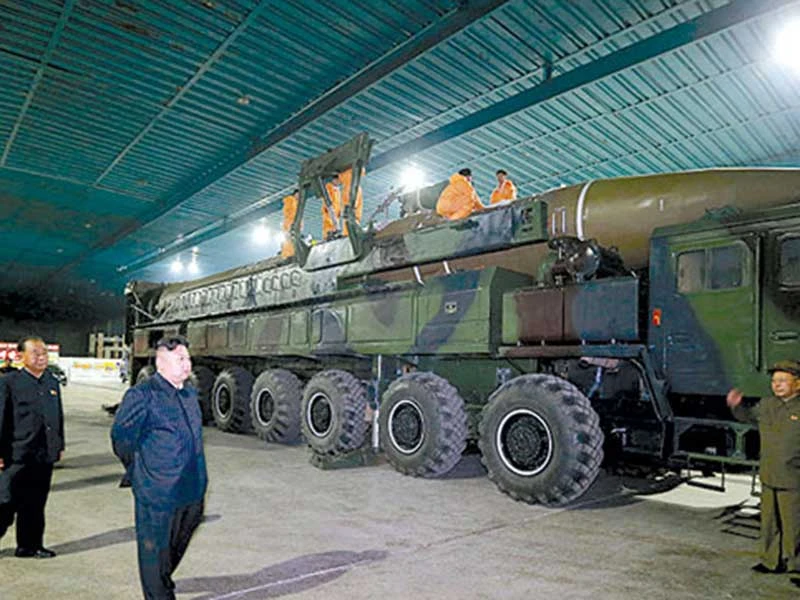Lãnh đạo Triều Tiên Kim Jong-un trong một lần thị sát tên lửa đạn đạo Hwasong-14. Ảnh: KCNA