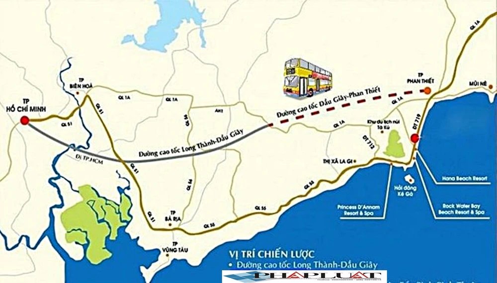Sơ đồ tuyến cao tốc Phan Thiết - Dầu Giây.