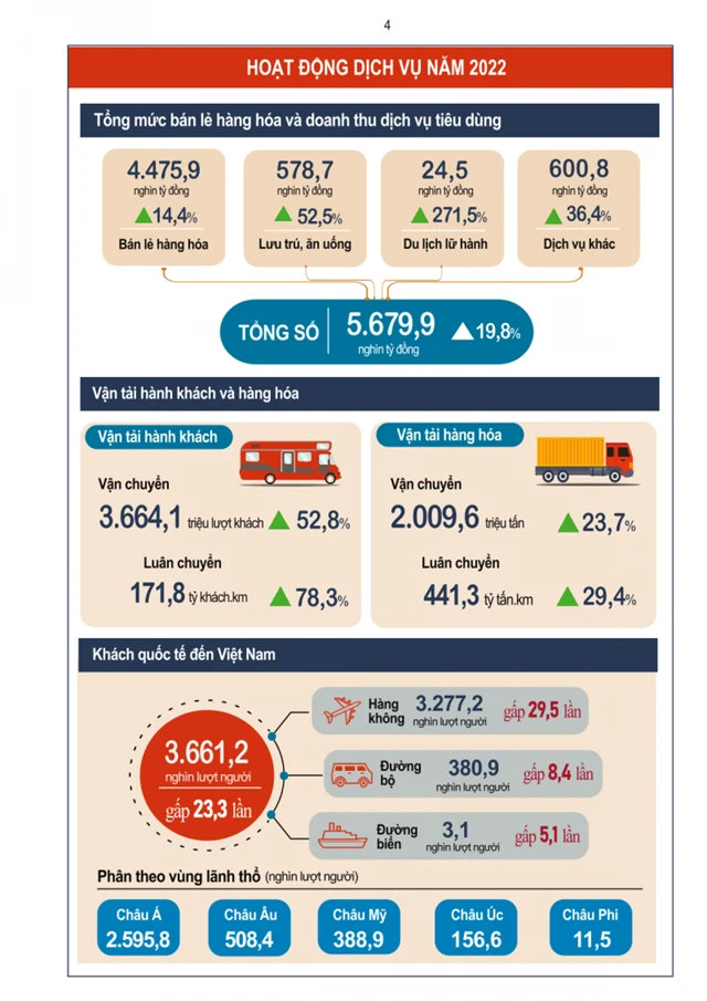 Một điểm sáng nữa của bức tranh kinh tế là khu vực dịch vụ được khôi phục và tăng trưởng mạnh mẽ với tốc độ tăng năm 2022 đạt 9,99%, cao nhất trong giai đoạn 2011-2022.
