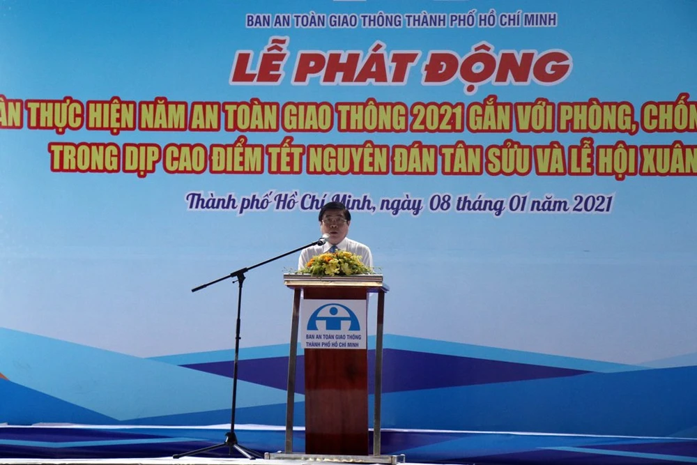 Phát biểu tại lễ, ông Nguyễn Thành Phong, Chủ tịch UBND TP.HCM, cho biết việc tổ chức buổi lễ hôm nay là một hoạt động rất có ý nghĩa để tiếp thêm động lực và lan toả ý thức tuân thủ giao thông cho nhân dân TP.