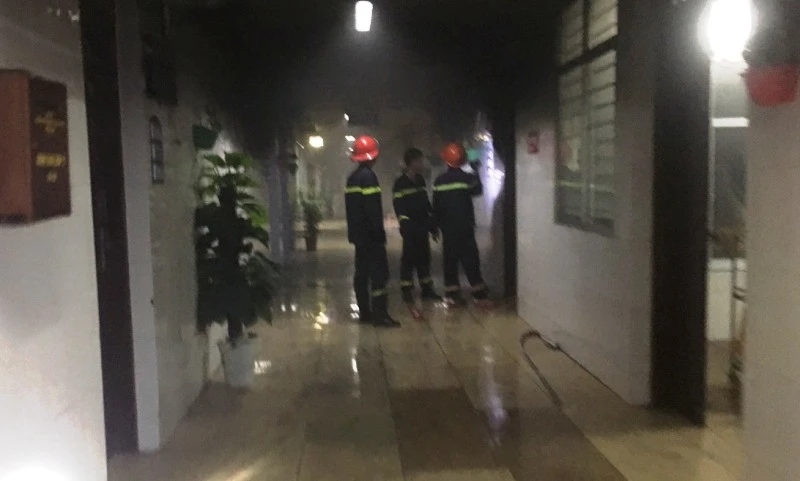 Cảnh sát PCCC có mặt tại bệnh viện dập lửa.
