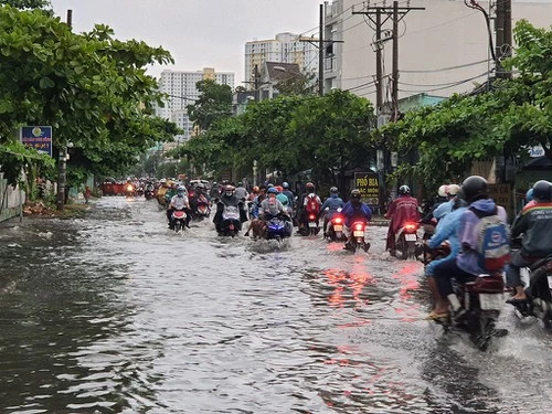 Cơn mưa sáng sớm ngày 16-4 gây ngập nhiều nơi ở TP.HCM. Ảnh: NT