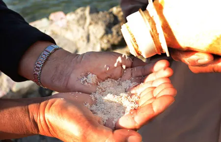 51 tuổi, cuộc đời từng trải ngang dọc trên biển, ông Thạch cho rằng sống trong đời thì phải biết lưu lại điều gì cho con cháu mai sau. Tỉ mẩn từng hạt cát trắng mịn như được mài san hô trên tay, rồi nhúm từng nắm cát và khẽ khàng rắc vào lư hương, ông Thạch nói bằng giọng xúc động: “Ngày xưa ông bà tổ tiên mình ở Hoàng Sa. Nên giờ mình ra ngoải xúc cát về để tưởng nhớ ông bà trong ngày xuân. Với lại, mình mang cát về để nhắc nhở mấy đứa con cháu đừng quên Hoàng Sa là của Việt Nam”.