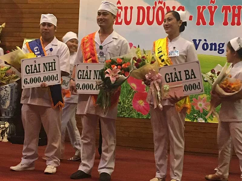Anh Tài (bìa trái) đạt giải nhì cuộc thi điều dưỡng giỏi. Ảnh: HP