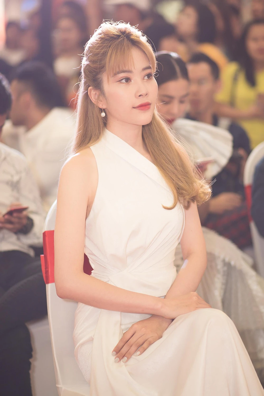 Với mái tóc vàng lạ mắt, nàng hoa khôi nhanh chóng thu hút sự chú ý của mọi người trong sự kiện.