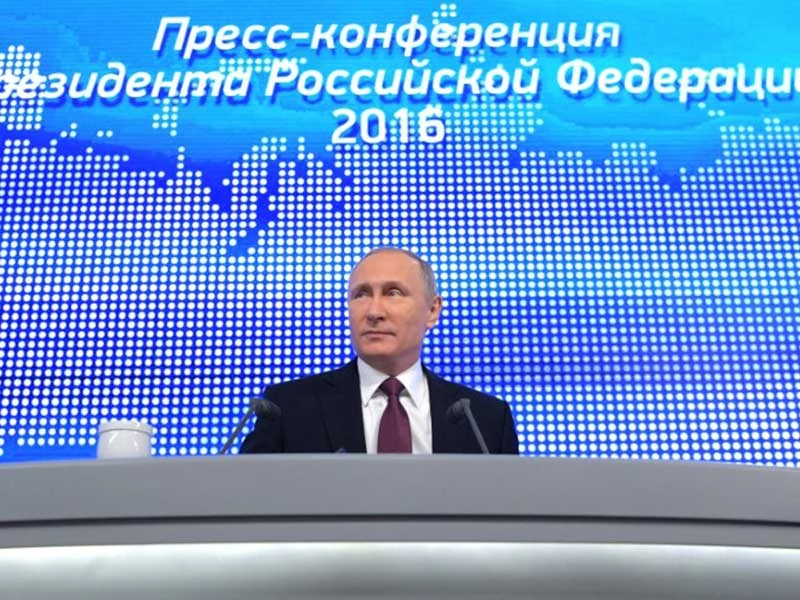 Tổng thống Nga Vladimir Putin tổ chức họp báo cuối năm vào ngày 23-12 sau một năm 2016 đầy những thắng lợi. Ảnh: REUTERS