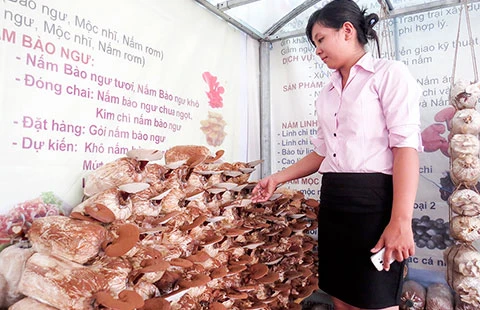 Sản phẩm nấm linh chi được trưng bày tại một hội chợ triển lãm giống nông nghiệp. Ảnh: NGUYỄN TÂN