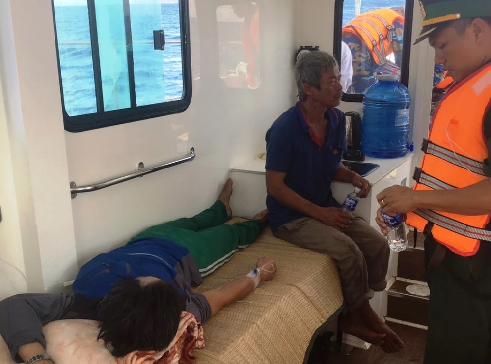 Ngư dân đang cấp cứu trên tàu của bộ đội biên Phòng. Ảnh: BP