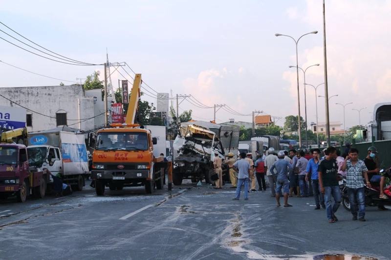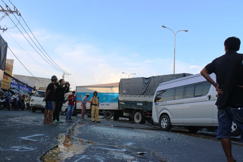 Tại hiện trường, những chiếc xe ngổn ngang, kính chắn gió vỡ nát, văng tung tóe, phần đầu chiếc xe chở gỗ nát bét, những xe khác cũng hư hỏng nặng. Ngay sau khi vụ tai nạn xảy ra, lực lượng CSGT Công an huyện Hóc Môn, Đội CSGT An Sương… đã nhanh chóng có mặt tại hiện trường để xử lý. Quốc lộ 1A đã kẹt cứng vài giờ vì vụ tai nạn.