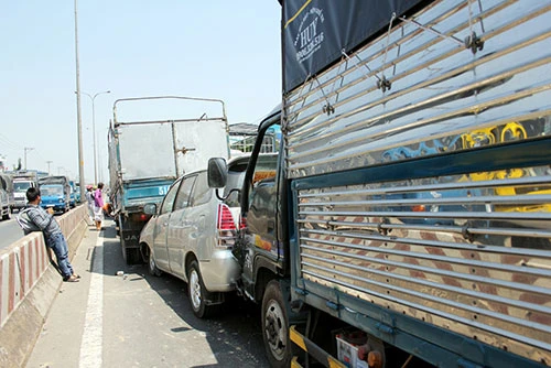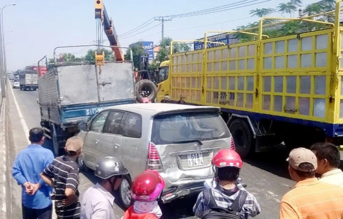 Hiện trường tai nạn liên hoàn trên quốc lộ 1A (Bình Tân, TP.HCM) - Ảnh An Phước