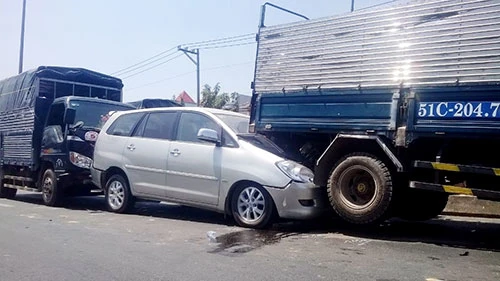 Thông tin từ nhân chứng cho biết, khoảng 10 giờ 45, tài xế Trần Thanh Xuân (40 tuổi, quê Long An) đi ô tô bảy chỗ BKs 51A - 134.74 lưu thông từ Bình Chánh về ngã tư An Sương. Khi di chuyển trên quốc lộ 1A (phường Bình Hưng Hòa, Bình Tân) thì đâm xe tải biển số 51C - 204.76 do Trịnh Phúc cầm lái. Xe anh Phúc lao thẳng vào ba ô tô cùng chiều phía trước. Lúc này, xe tải chạy từ phía sau không kịp xử lý đã tông ô tô bảy chỗ khiến năm phương tiện dính chùm nhau tạo nên chuỗi tai nạn liên hoàn nhưng rất may không có thiệt hại về người.