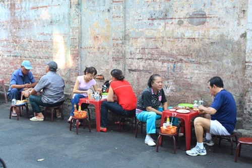 Tiệm bánh lâu đời được coi là ký ức ẩm thực Sài Gòn của nhiều người. Ở hẻm 53 Cao Thắng, quận 3, vào mỗi buổi sáng, rất nhiều người tìm đến đây, ngồi trên những chiếc ghế cũ kỹ chờ đến lượt phục vụ. Ảnh: Huấn Phan.