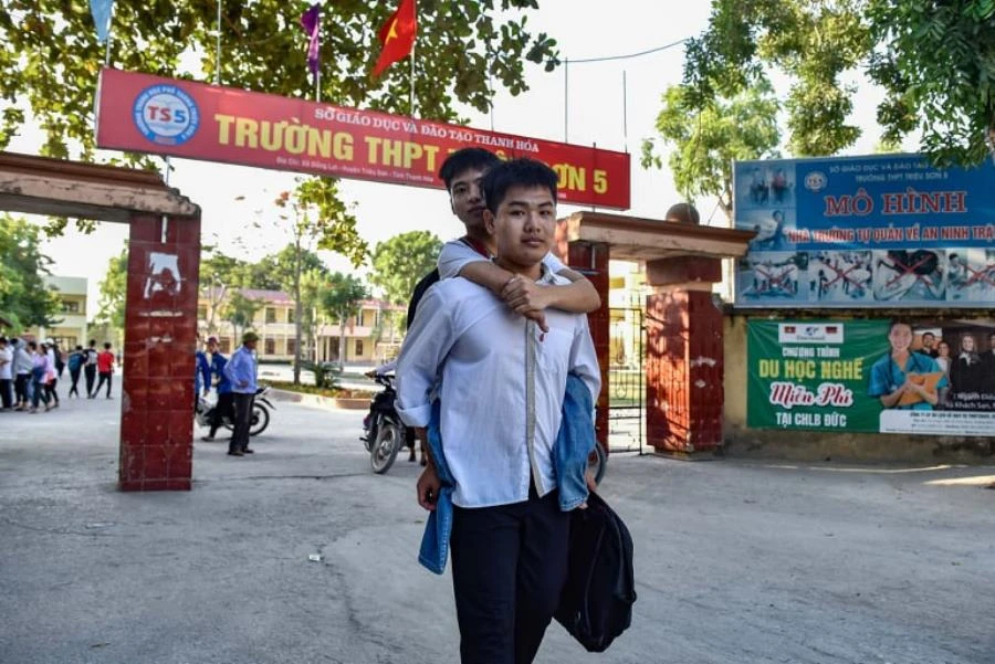 Đó là chia sẻ của Ngô Minh Hiếu, Trường THPT Triệu Sơn 5 (Thanh Hóa), nam sinh suốt 10 năm qua cõng bạn là Nguyễn Tất Minh tới trường.